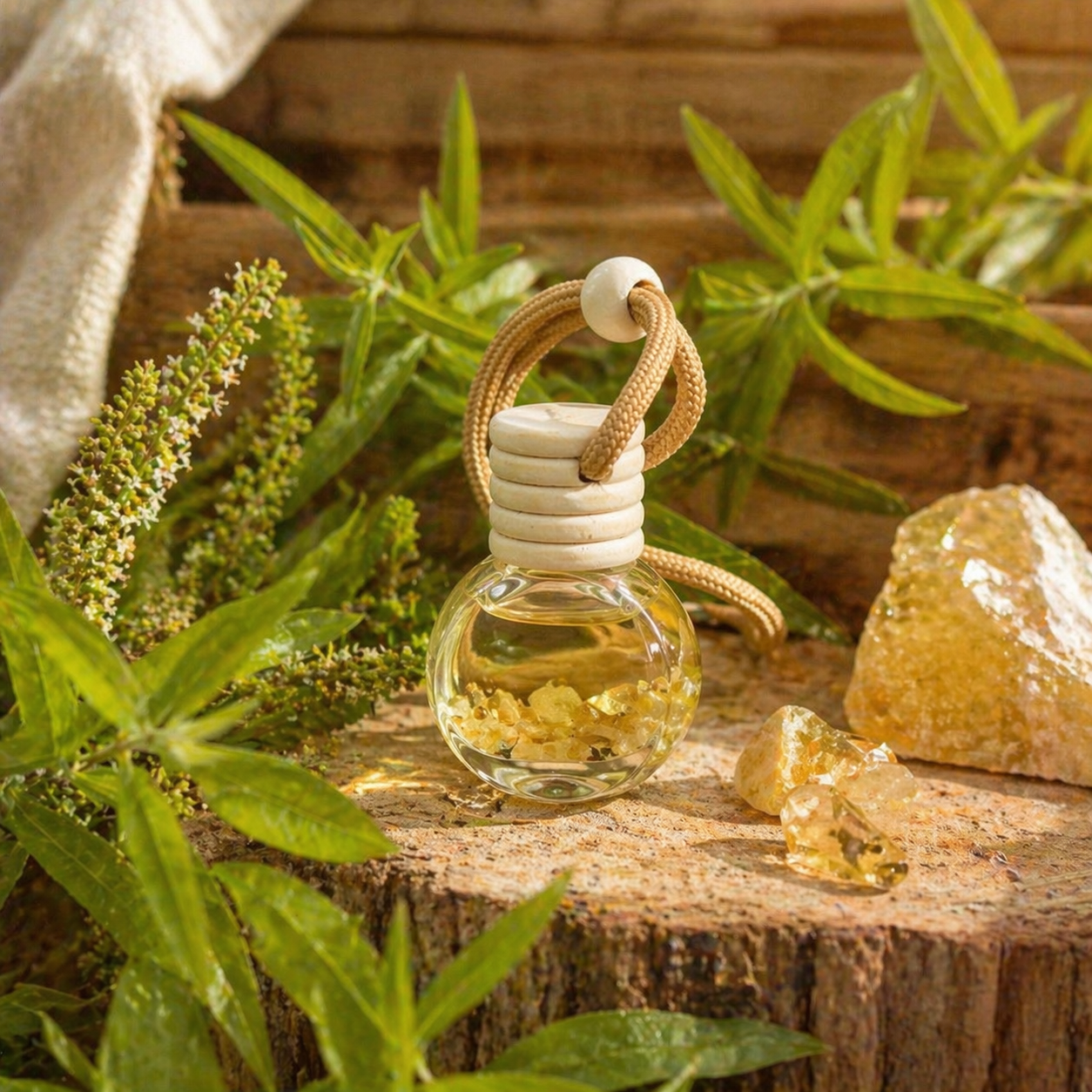 Svěží citronová verbena rozjasní mysl, dodá energii a navodí pocit lehkosti a dobré nálady. Její jemně citrusová vůně působí osvěžujícím dojmem a podporuje pozitivní naladění. Citrín uvnitř difuzéru je kamenem radosti, hojnosti a sluneční energie. Pomáhá posilovat sebevědomí, optimismus a vnitřní sílu.