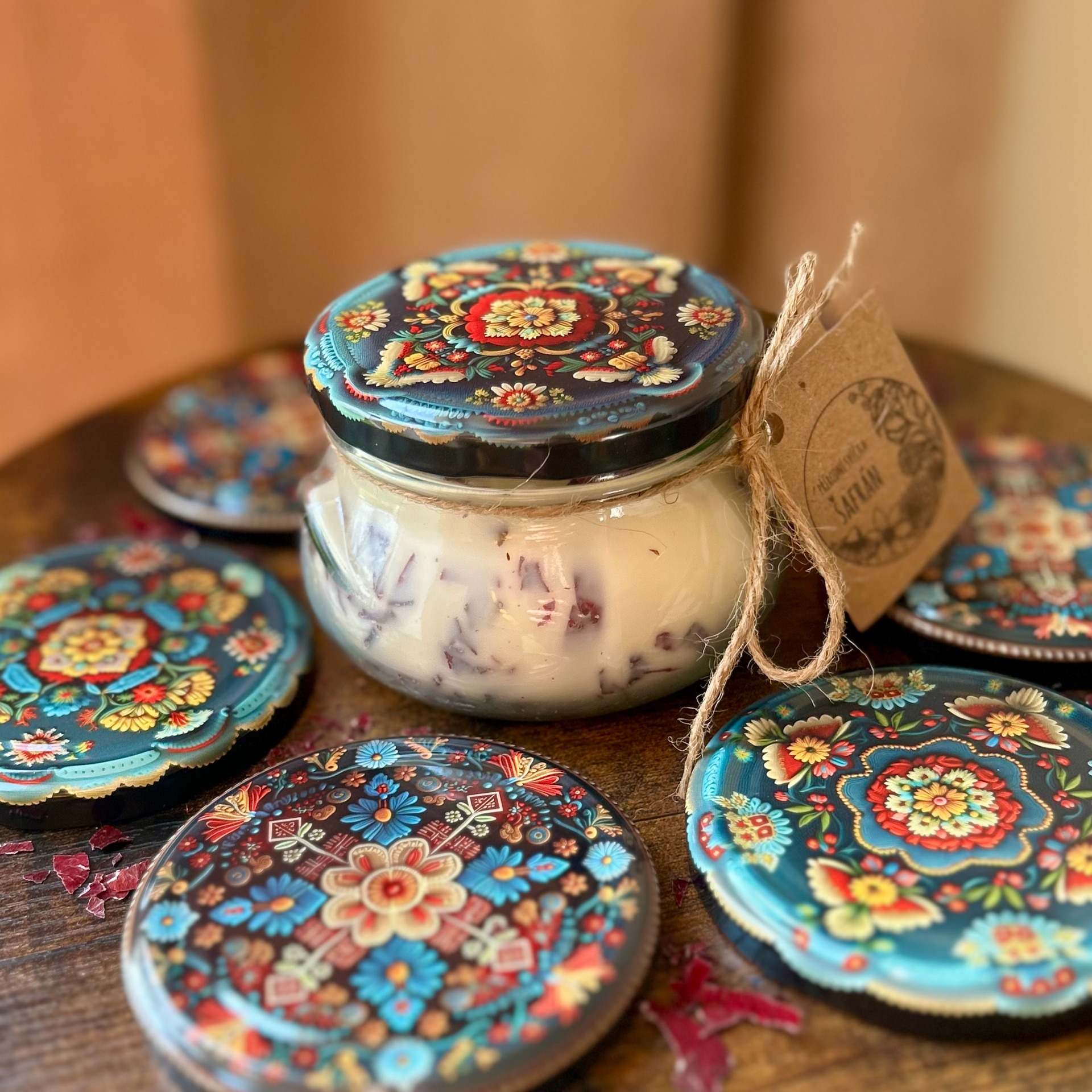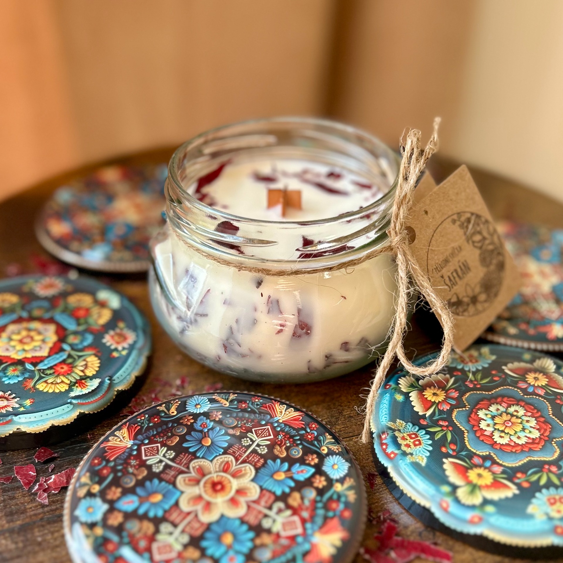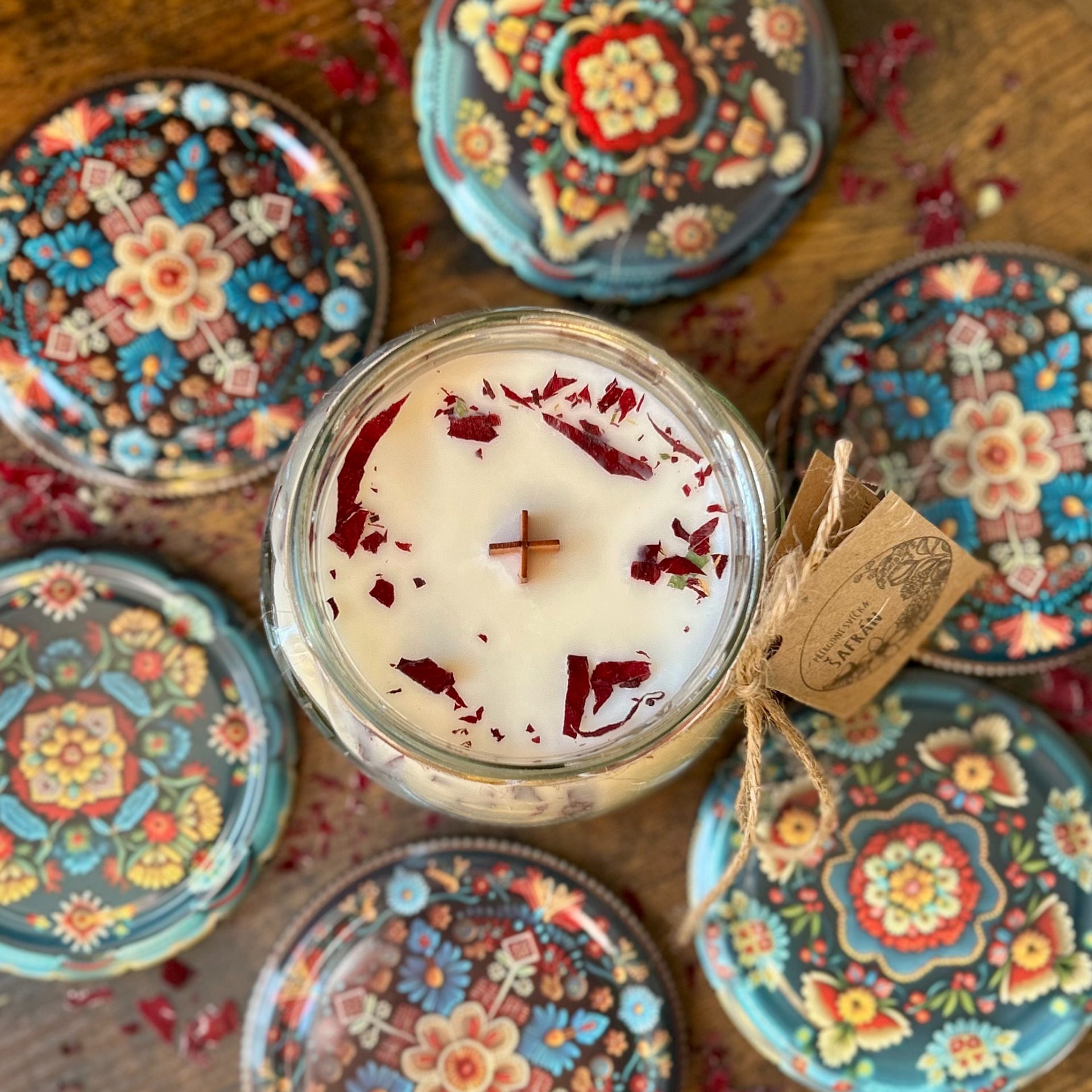 - ruční zdobení sušenými květy