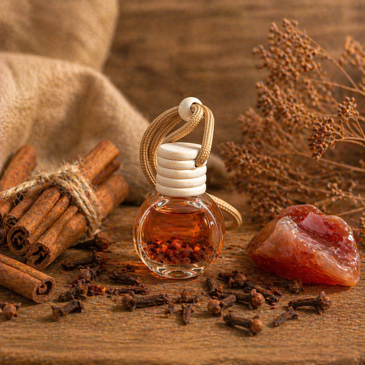Intenzivní hřebíček působí povzbudivě, dodává energii a zároveň přináší pocit ochrany a stability. Karneol uvnitř difuzéru je kamenem vitality, odvahy a životní energie. Podporuje motivaci, kreativitu a vnitřní sílu.