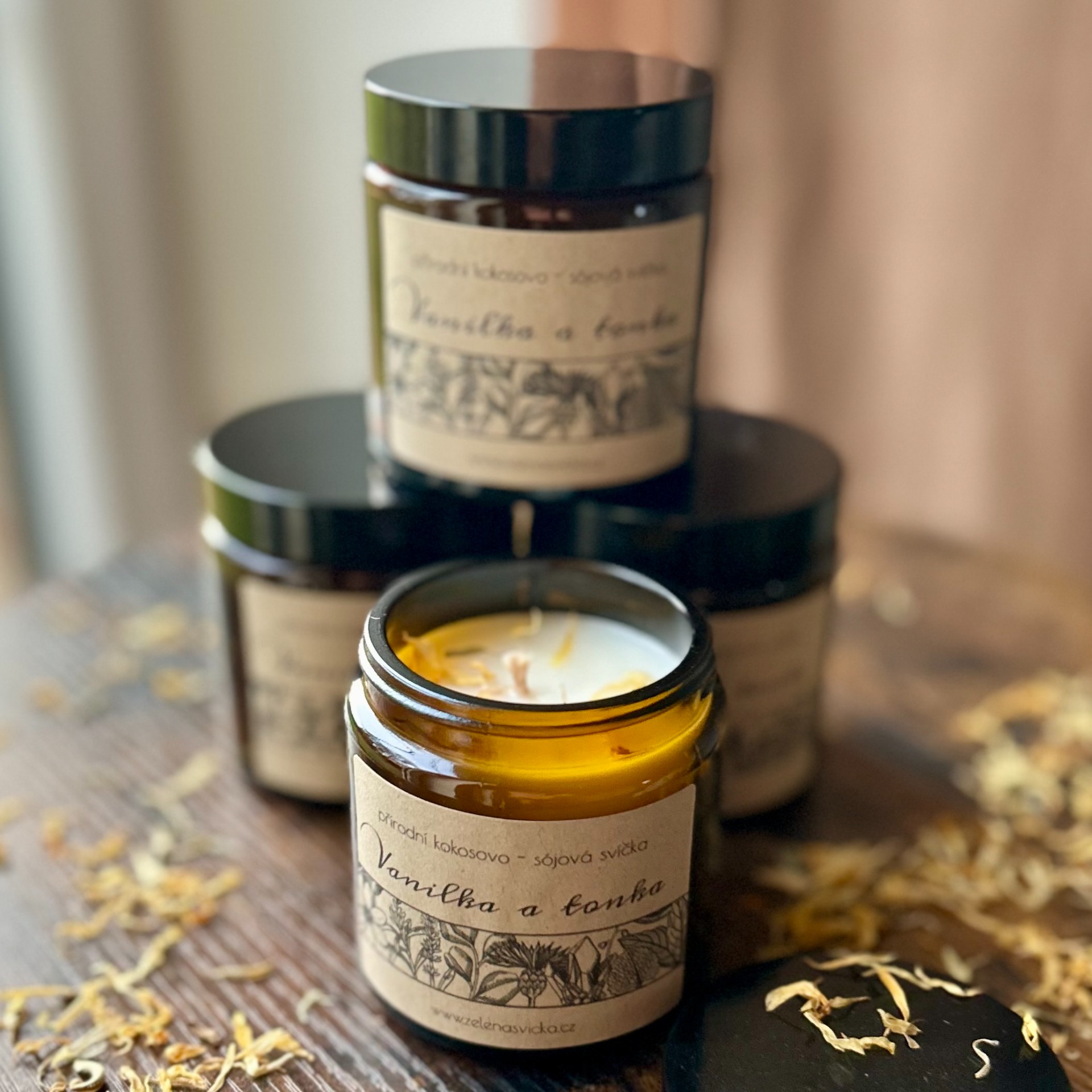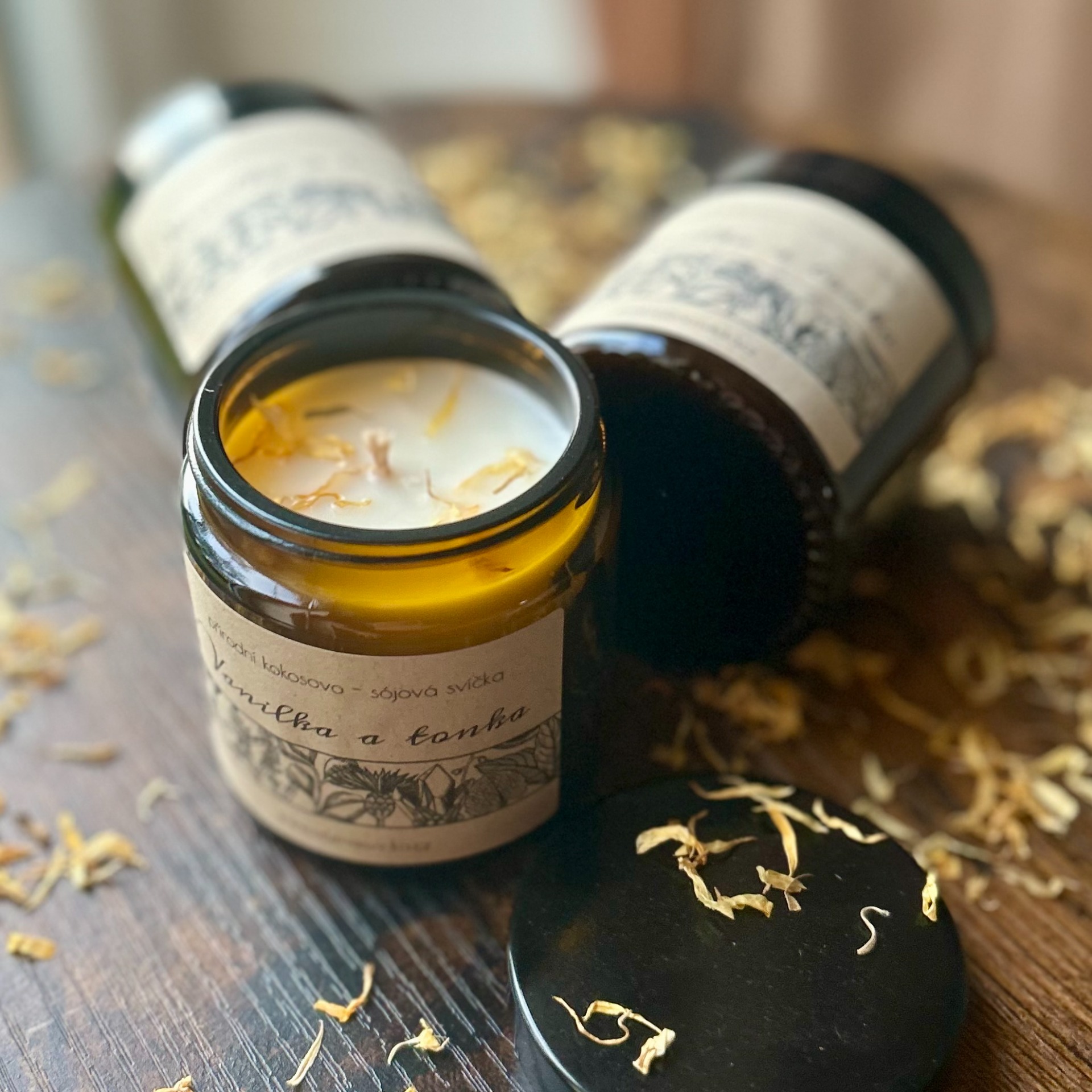 Svíčka je ručně odlitá v elegantní hnědé sklenici (120 ml) z kokosovo–sojového vosku, který hoří čistě, pomalu a bez škodlivin.
