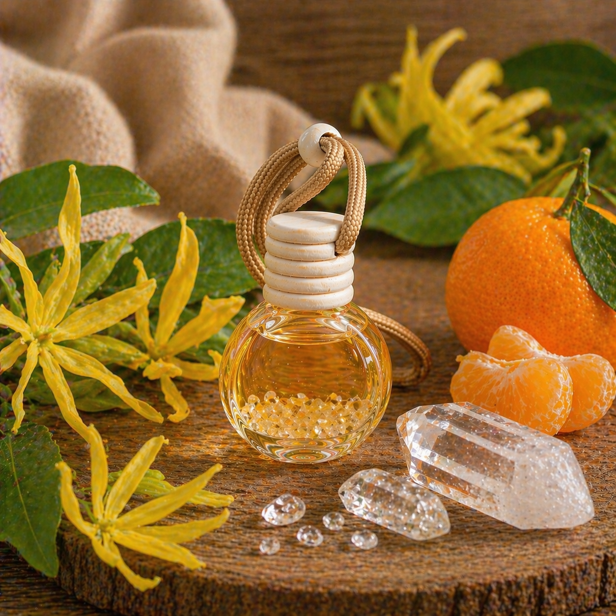 Šťavnatá mandarinka rozjasňuje náladu, přináší radost a lehkost do každého dne. Křišťál uvnitř difuzéru je univerzálním kamenem čistoty a harmonie. Pomáhá zesilovat energii, harmonizovat prostor a podpořit celkovou rovnováhu.